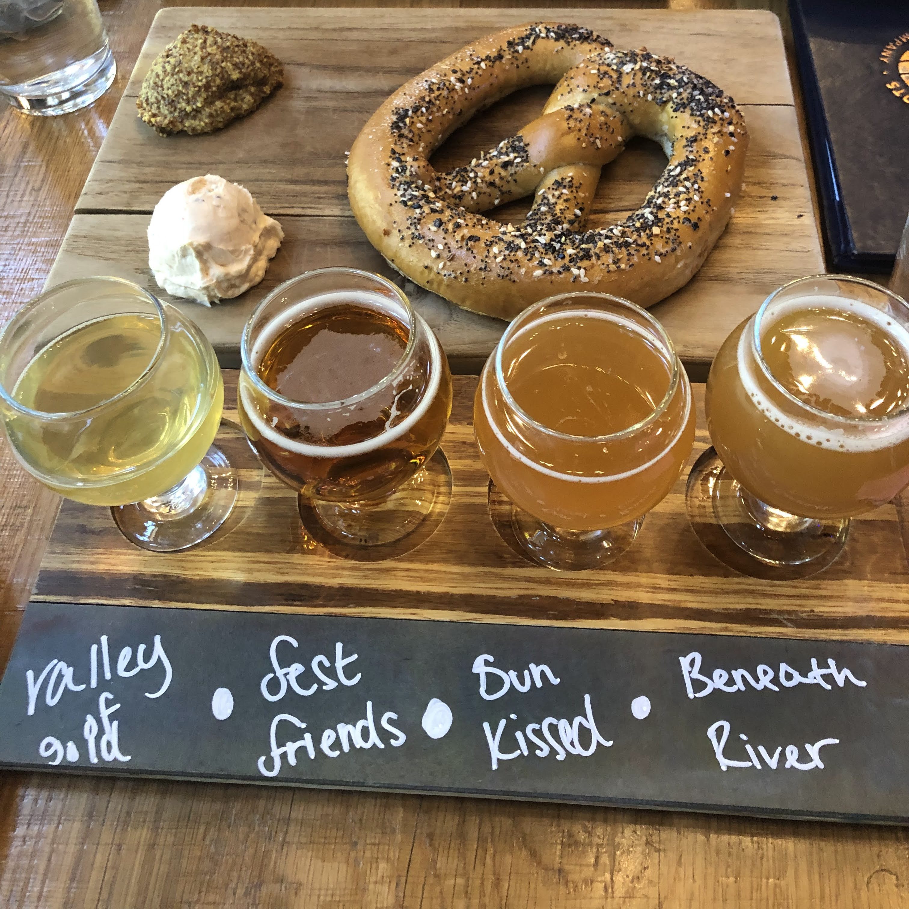 Finally, we left the park to head to Ottawa for lunch. We went to Tangled Roots Brewing Company, which fully embraces the idea of keeping food and beer local. All the ingredients are grown in the region, brewed in house, and named for towns and landmarks nearby. One of these beers is Devils Paintbox IPA, named for the landmark in Matthiessen State Park. Tangled Roots has several locations, but the one we went to is within The Lone Buffalo Brewpub and Taproom, and we enjoyed all the food and beer we tried. We think that more places should put everything seasoning on soft pretzels because of that menu item.