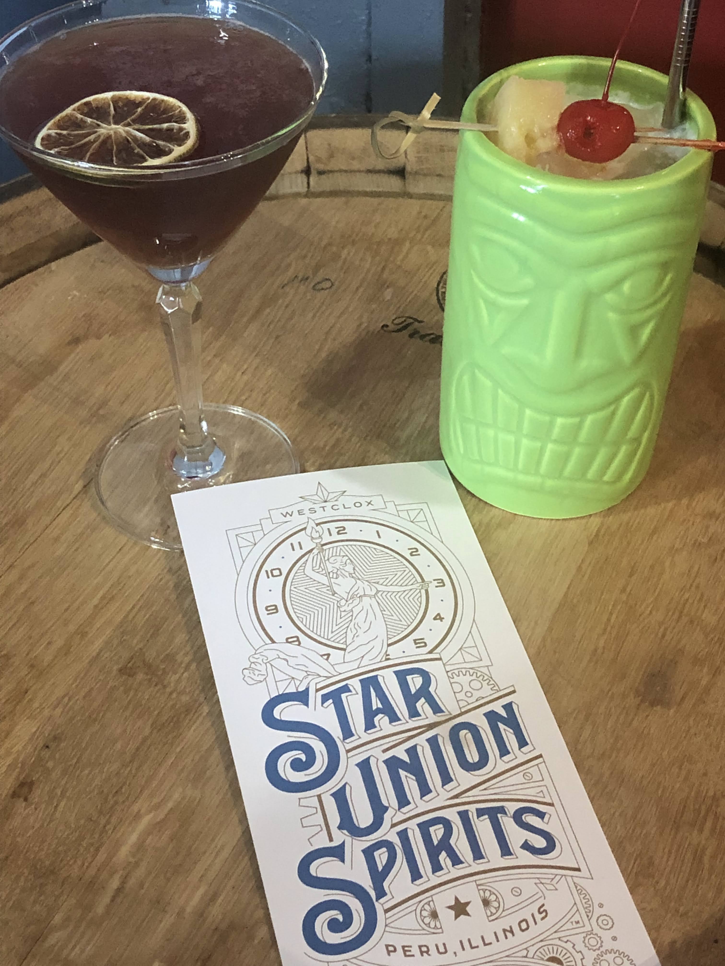 We finished up our day by heading to Star Union Spirits in Peru, IL. We go to a lot of breweries and wineries that are in buildings that used to be other things, but the history behind Star Union Spirits is a whole other level. The building itself used to be a clock factory in the 1800s. The distillery was named for a distillery of the same name that was also in the area in the 1800s, and operated for over 100 years before going out of business in 1966. Today, the influence of all that history is evident in both the spirits and the cocktails, and we would recommend giving them a try.
