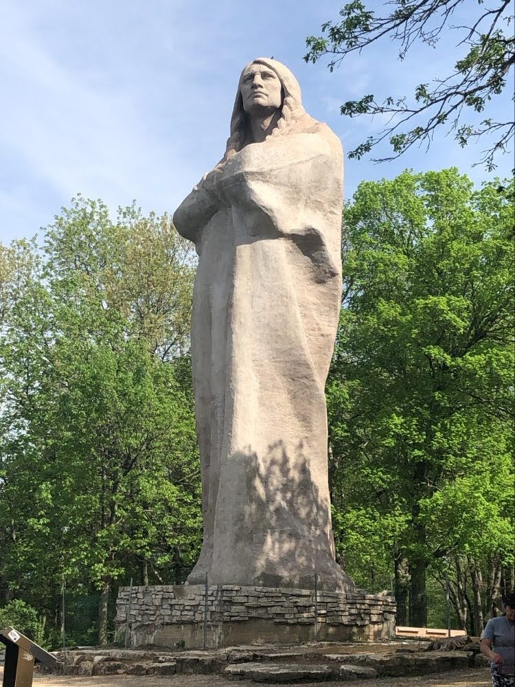 In order to do more than one park in one day, we knew we had to start with the more difficult trail. So we drove out to Lowden State Park first, right up to the base of the statue of Blackhawk this park is known for. The statue overlooks the Rock River, and at 50 feet tall is considered to be the second largest concrete monolithic structure in the world.