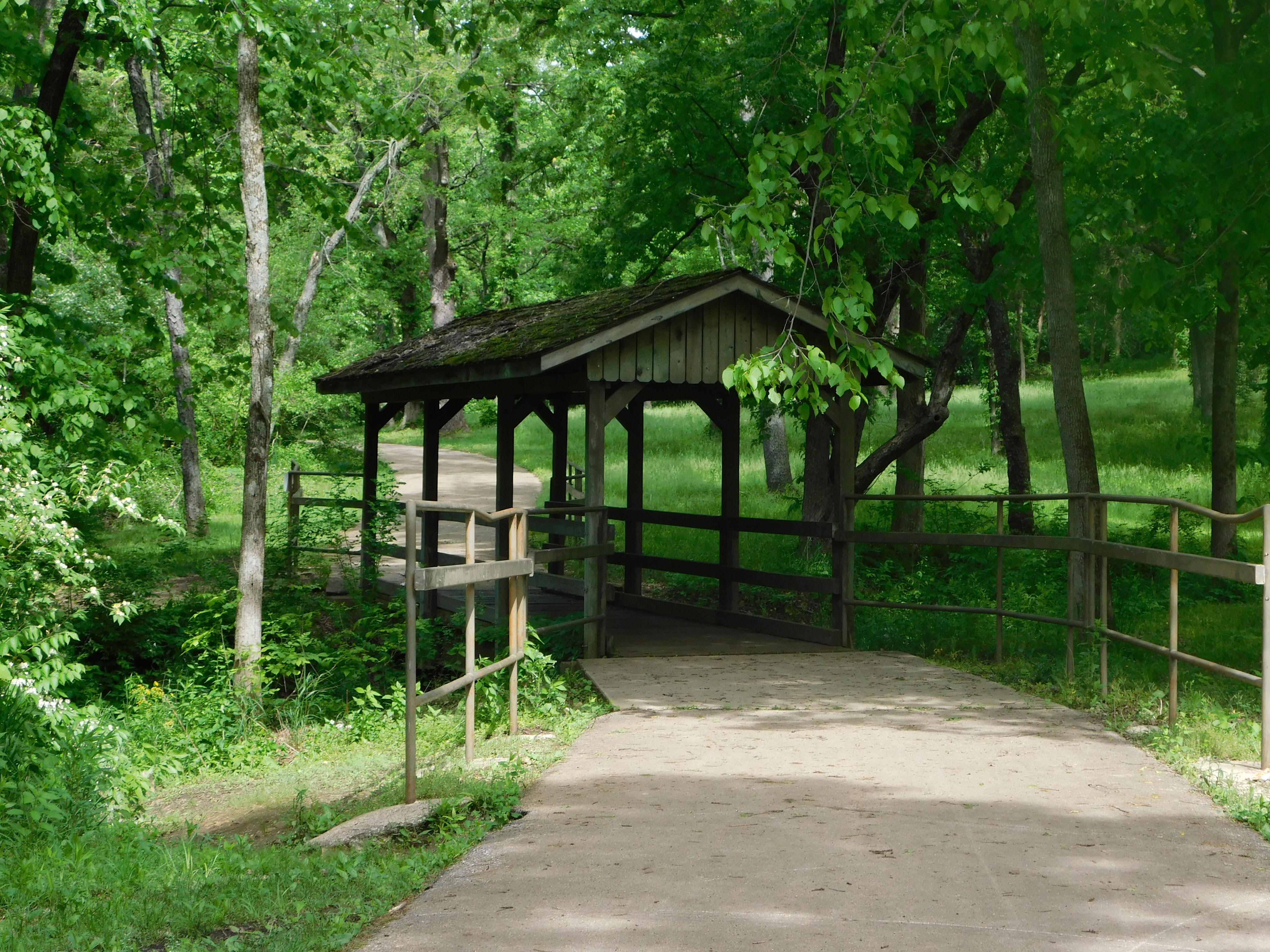 After stopping by a river overlook, crossing a small covered bridge, and getting a little turned around while trying to drive to the trailhead, we found the small suspension bridge that crosses the Rock Creek.