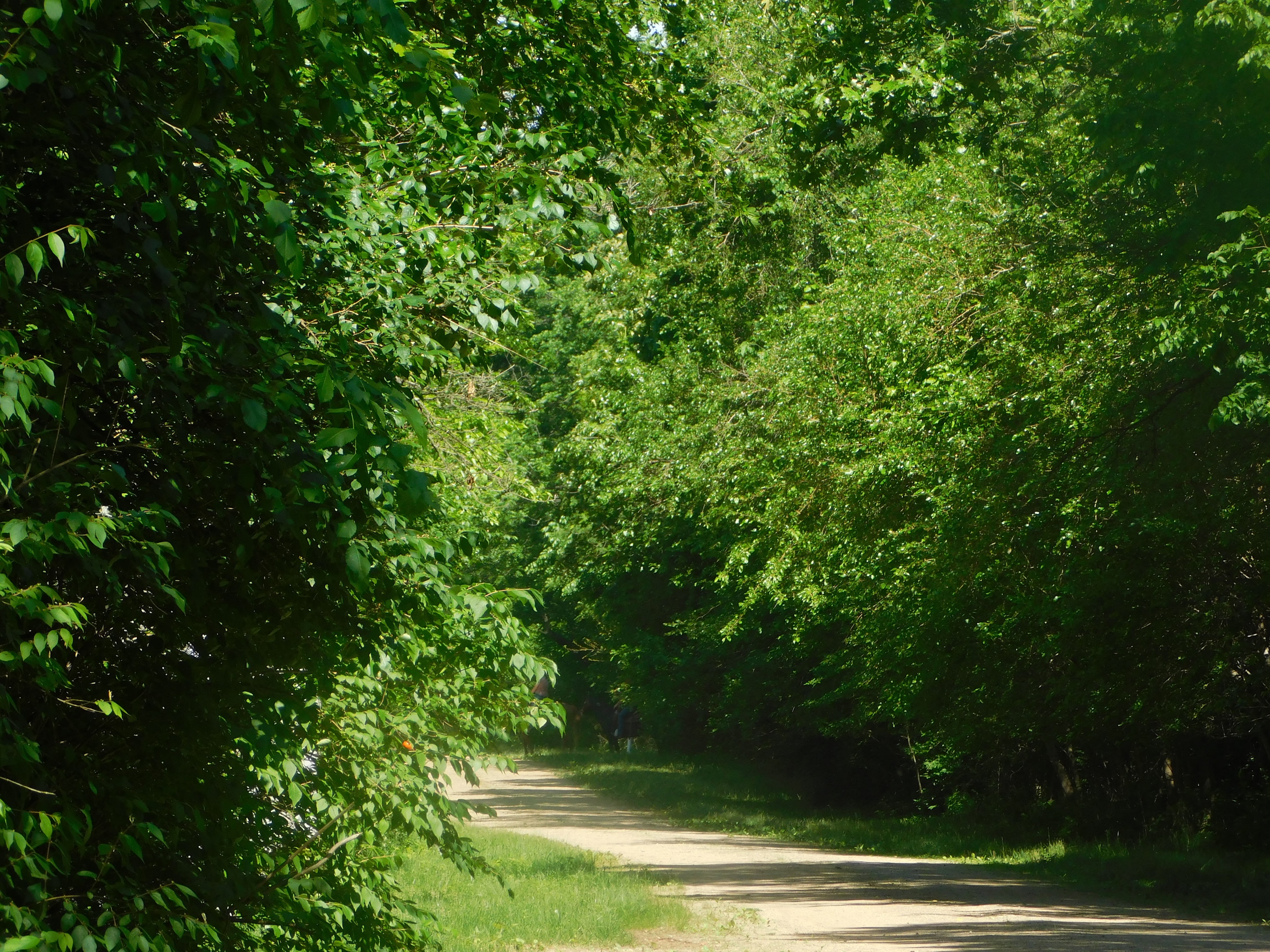 There are miles of both hiking and equestrian trails, all of varying lengths and difficulties, and the one we picked was in line with our usual distance based on our abilities. We ended up not being able to hike at all because the bugs were so bad and we were genuinely very worried about ticks. Instead we walked along the dirt road for a couple miles before turning back. Despite all the trouble, we still saw plenty of butterflies as well as dozens of snails. We also saw a family out on their horses, the first time we’ve actually seen riders out at all.