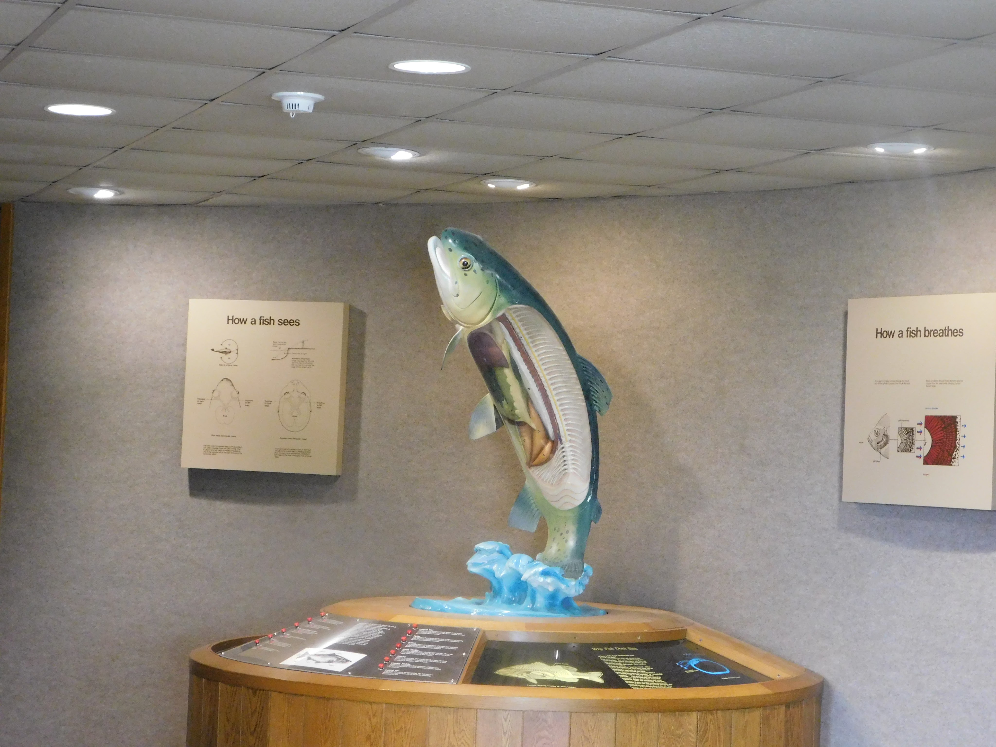 Disheartened and needing change of pace, we went across the road to the Jake Wolf Memorial Fish Hatchery. While it is an operating hatchery, it also serves as a museum, with exhibits about natural history as well as the industry. In stark contrast to Sand Ridge, this place was jam packed with displays and information. Everything you could ever want to know about midwestern fish is here.