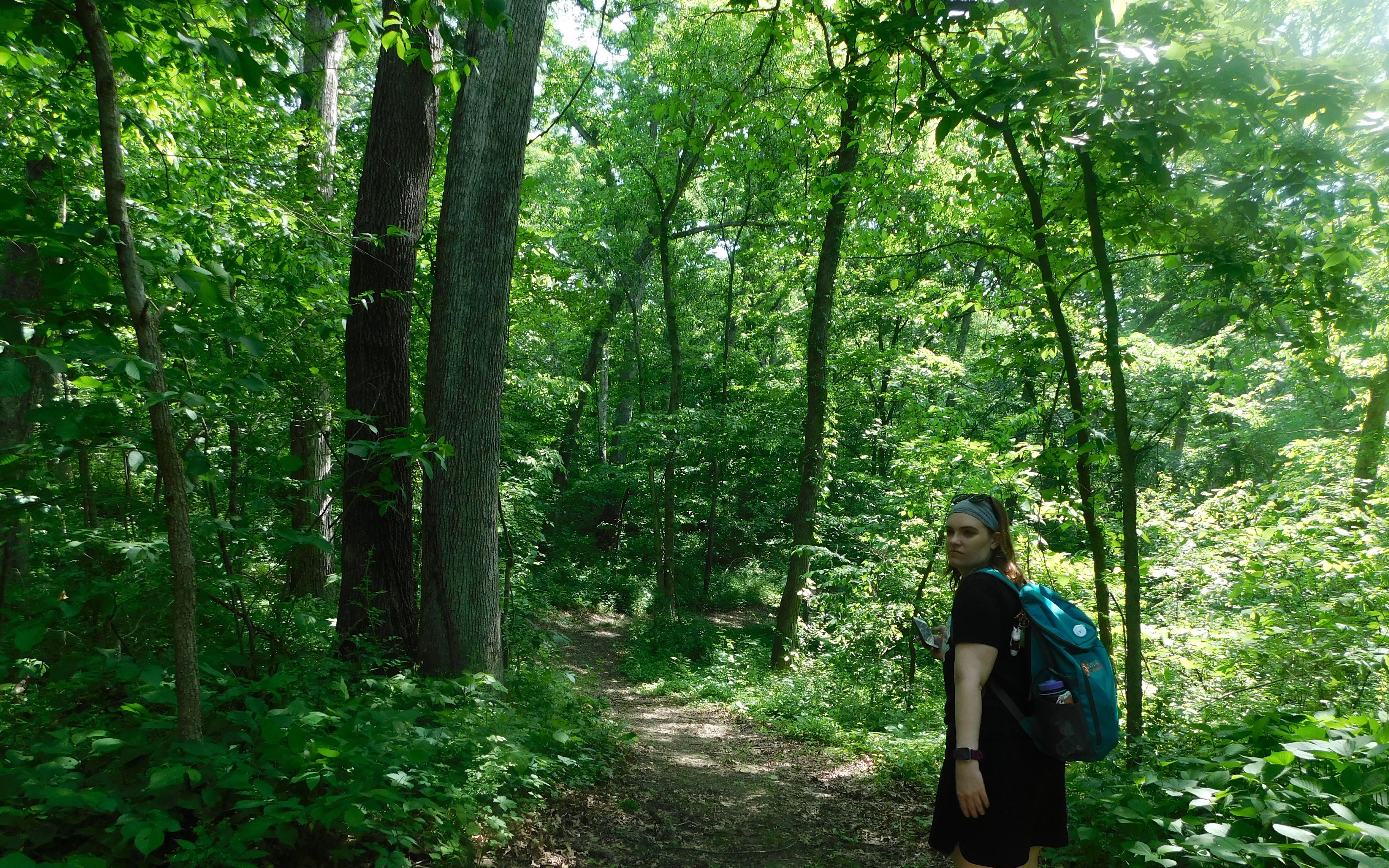 Despite the initial confusion, the serenity of this trail once we were able to get started really made it all worth it. The park is one of the most forested places in this area, with different kinds of trees growing at different heights of the ravines. White and black oaks are found on the ridges high up, while sycamore and silver maples are down below on the floodplain. We were somewhere in the middle, and were more likely surrounded by a combination of oak and maple trees.