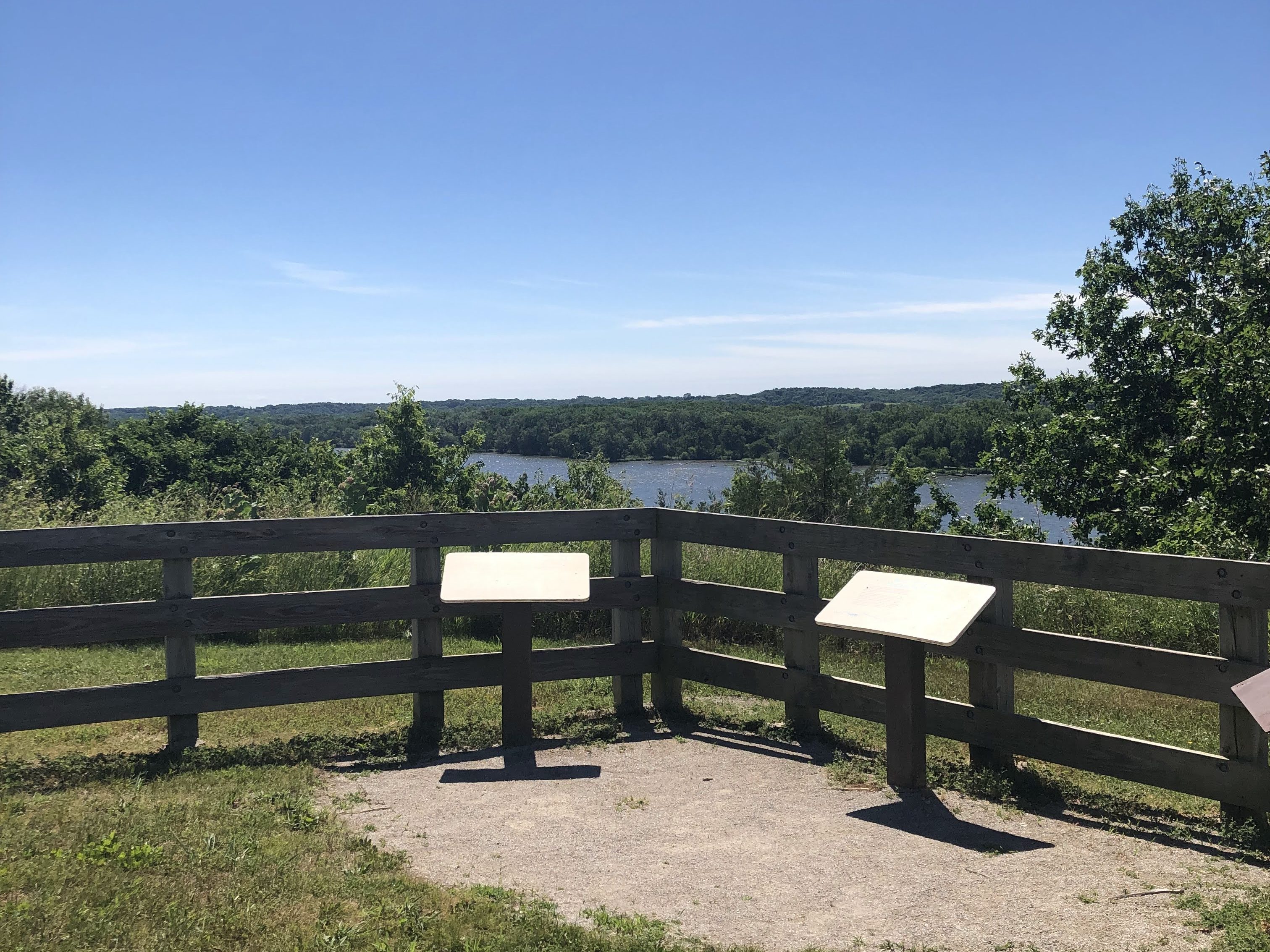 We knew beforehand that Buffalo Rock was significantly smaller than most of the other parks in the region at only 298 acres (Starved Rock is 2,630 acres). We also knew that the trails available were pretty short, both under 3 miles long. In visiting, we would say these trails are both pretty accessible to all ability levels. The trails run both thru the different sculptures as well overlooking the river. They are probably the best views we have seen at an overlook without needing to climb up a very steep hill.
