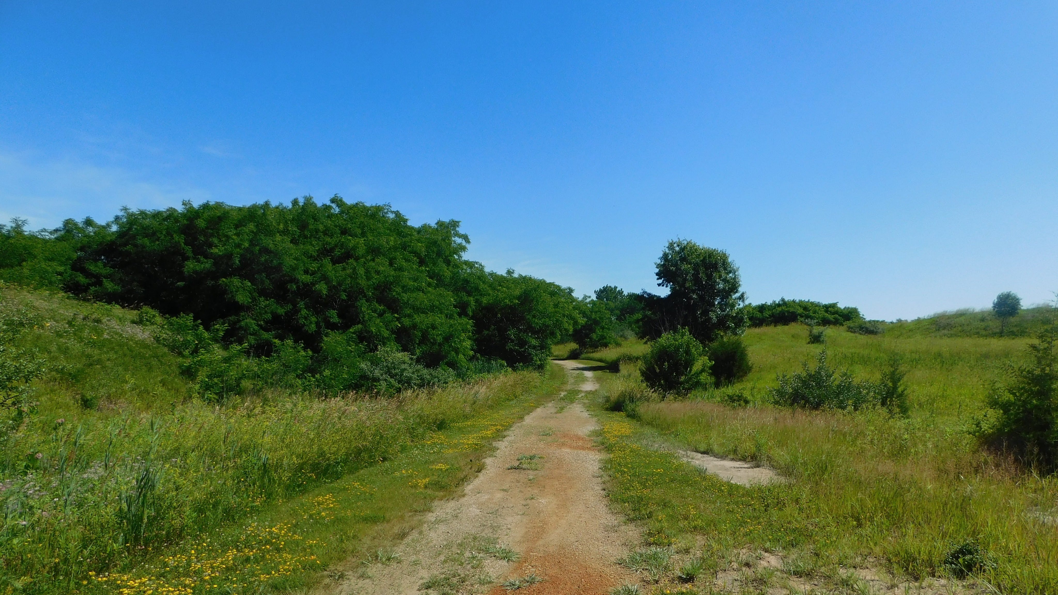 Diverging from our usual path, we drove up to the top of the bluff on the north side of the Illinois River. Our first impression just from the drive in was that it was going to be very similar to the other places nearby; very rocky with canyons and lots of waterfalls. However, once we started our hike, we realized it is vastly different than what we were expecting. Instead of the deep canyons and complex trail systems, we saw a much more prairie-like landscape. At the time, I described it as “someone took a slice of Chain O’ Lakes State Park and dropped it on the top of a cliff”.