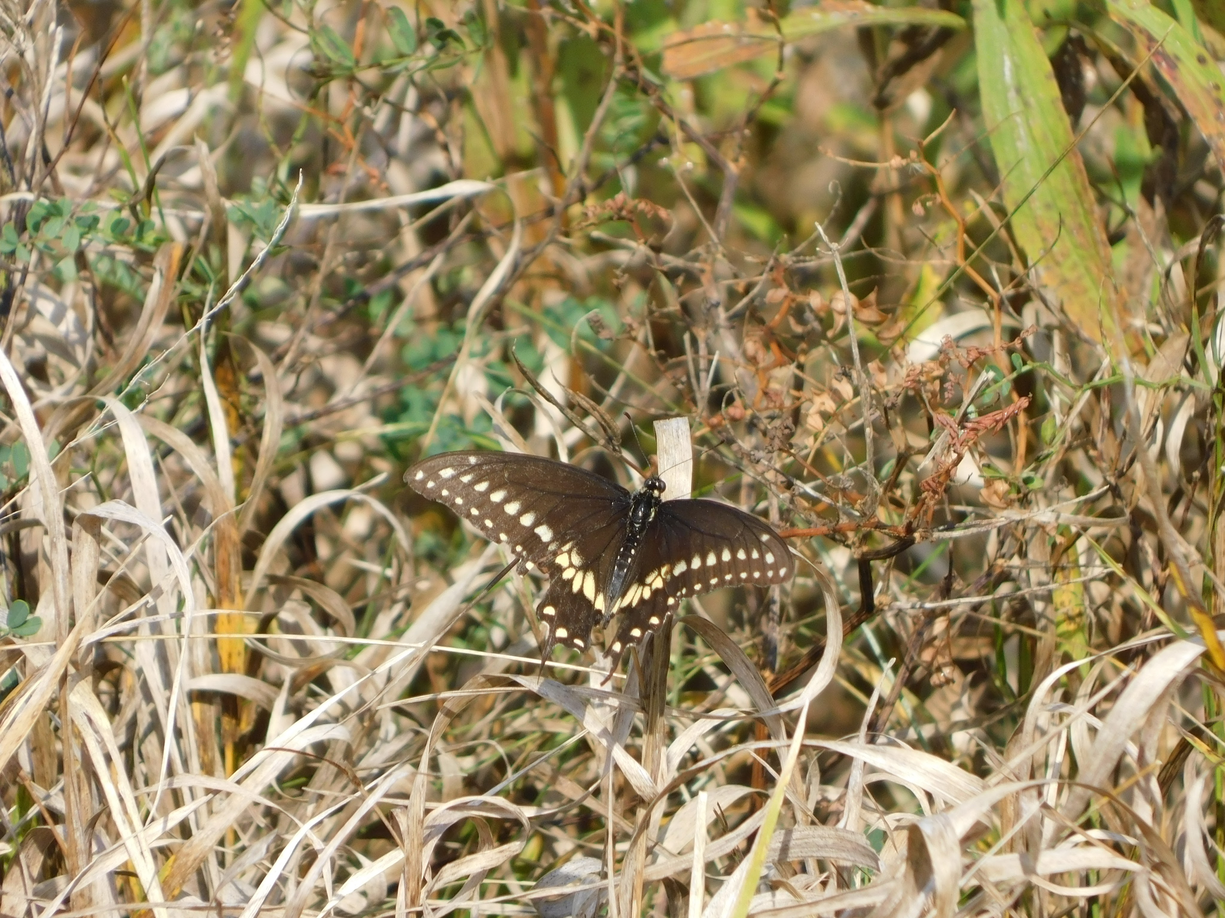 Although the majority of what you see while walking on the first stretch of path are very tall grasses, there were plenty of flowers interspersed as well, and there were several butterflies flying alongside us as we walked. Arriving to where the path loops around the pond, this is by far the area with the most trees and songbirds to go with them.