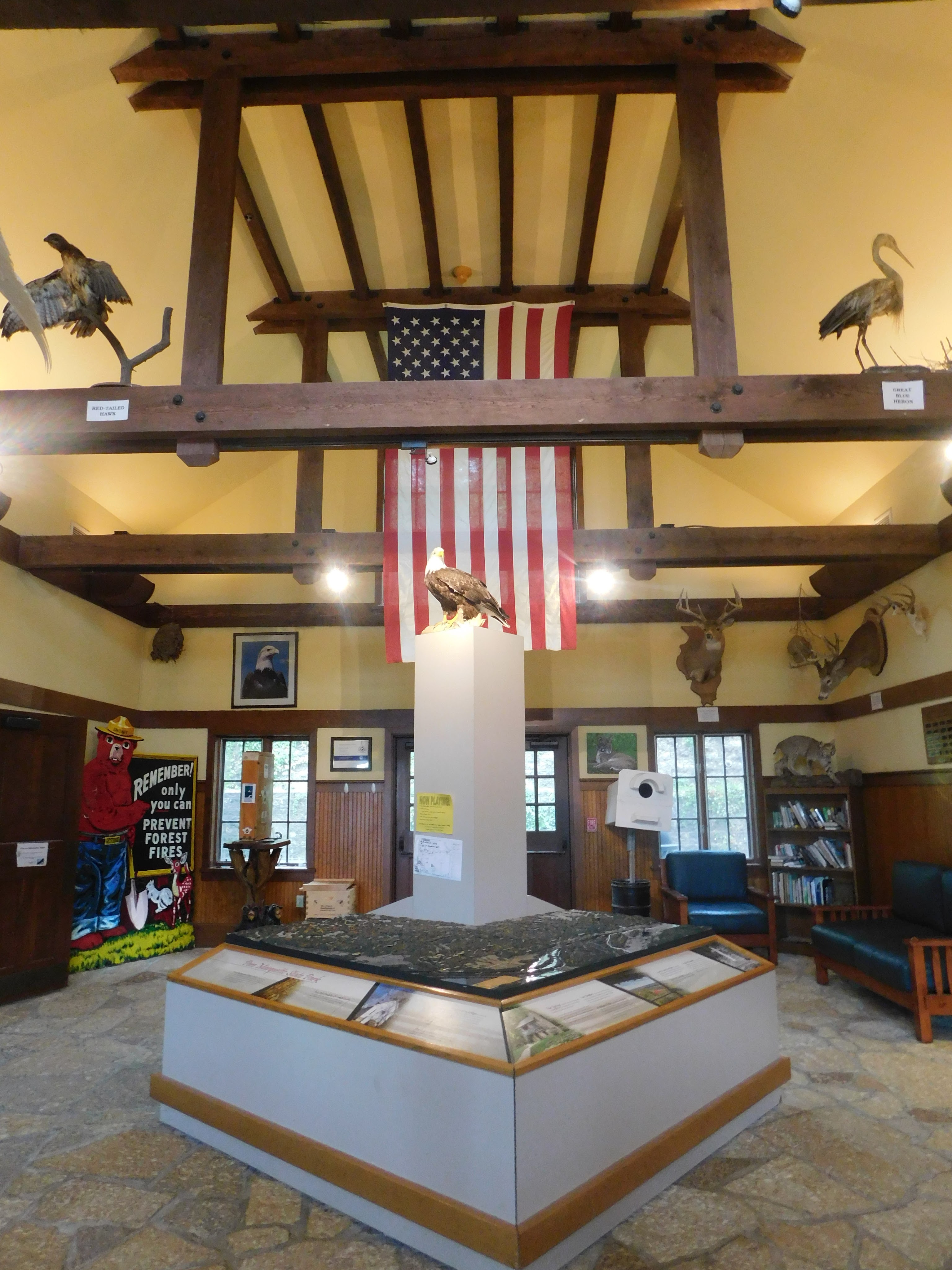 When asking “what is your favorite state park in Illinois?” The most common answer will be “Starved Rock”, but a significant faction will say Pere Marquette. This is for good reason. Not only is this park large and beautiful and well maintained, but it is also unique enough to stand out. The stony bluffs can be seen all around the park, on and off the trails. The visitor center is interesting, with stuff to see and do without leaving the parking lot.. This is also one of the few parks that has a lodge, doubling as a conference center. The lodge was built in the 1930s, and is a popular vacation destination, especially for people who live in the St. Louis area.