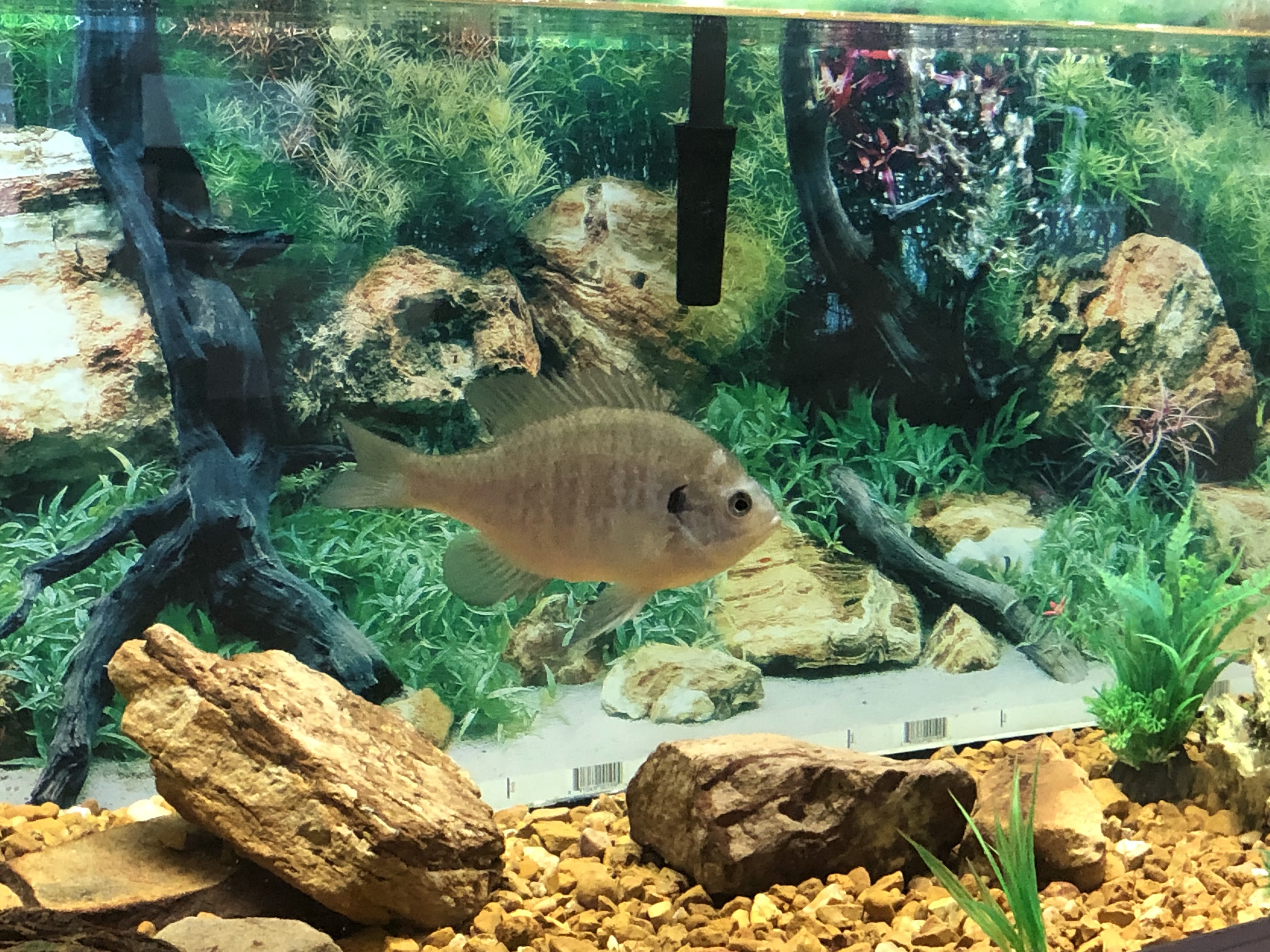 At this point, an employee found us and asked if we would like to feed the fish. We had not been expecting this, and were excited to accept. He gave us each a cup of fish food, and we went over to a pool that had channel catfish in it. He informed us that they don’t normally have channel catfish, and they were most likely going to be used for kids fishing events at some point. He was also concerned that it might be too cold for the fish to come up at all. But after tossing the food into the pool, it only took a few minutes for them to start coming up.