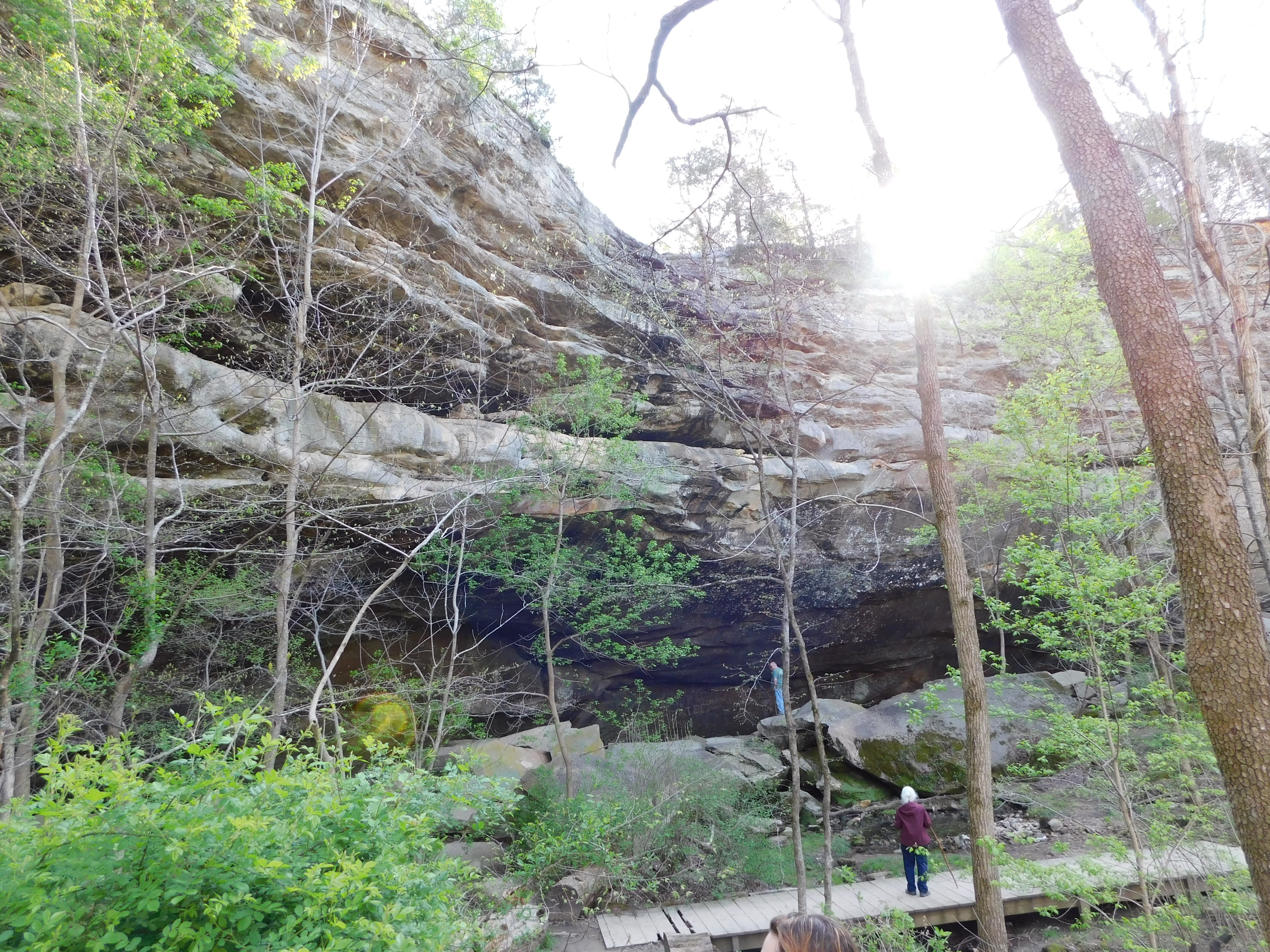 Our first trail was the Devil’s Sandtable Nature Trail. This is a very quick hike, less than half a mile and can be completed in about half an hour. The feature that the trail is named after is the large, almost mushroom shaped rock formation towards the end of the hike. It is very striking, and looks so precarious. The rest of the trail is full of interesting rock bluffs, including a large rock shelter where you can hear water running underneath somewhere.