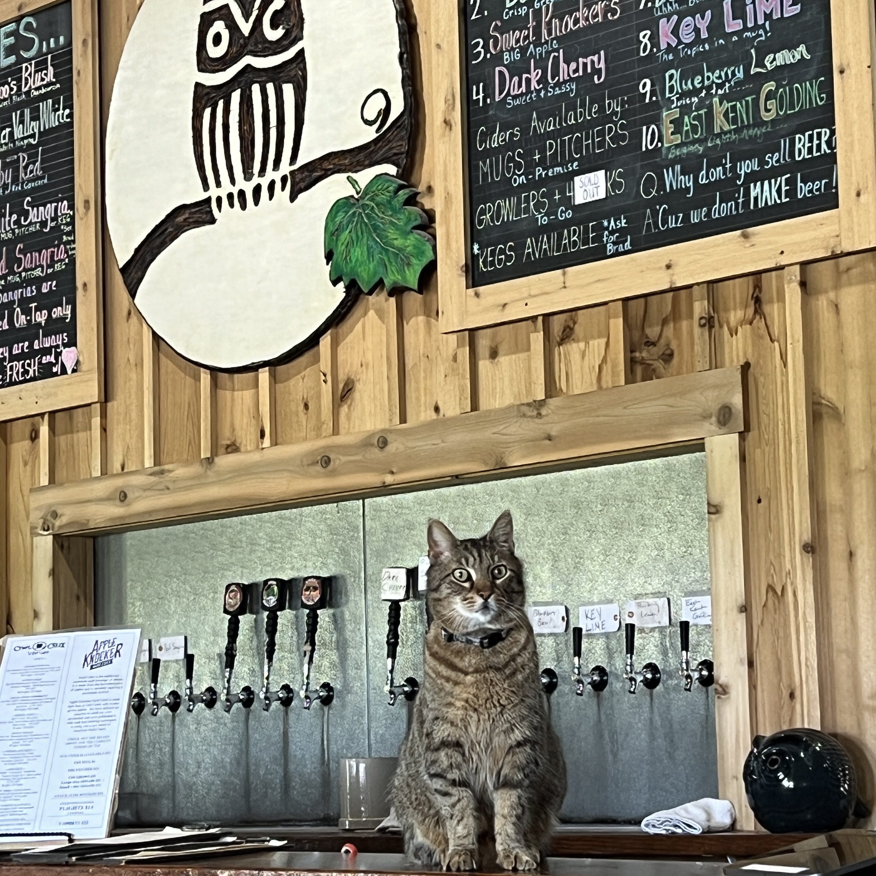 Keeping with the theme of wineries with cats, our next winery was Owl Creek Vineyards with their cat named Remy. What made this winery unique, and the reason we wanted to include it was that in addition to wine, they also specialize in cider. They had a very good selection of both, covering the full spectrum from very dry to very sweet. They also have food there, it was really nice to have lunch here.