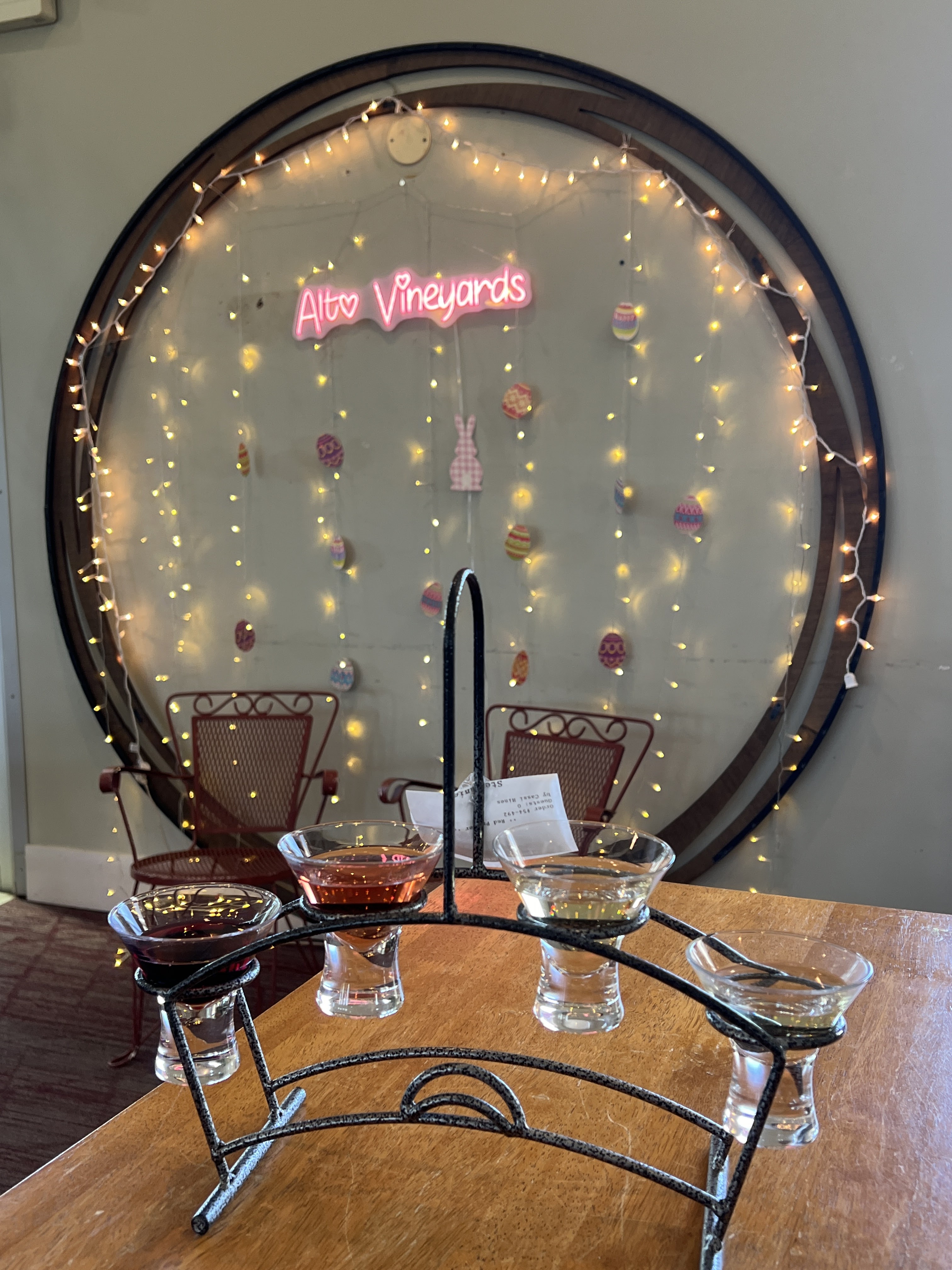 After hiking was finished for the day, we went to Alto Vineyards located in Alto Pass. We found this winery because of its proximity to Bald Knob. They have outdoor seating, which we had to skip that day because of the cold winds in that area, but the wine was good and they had a winery cat named Juniper.